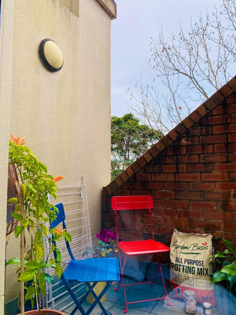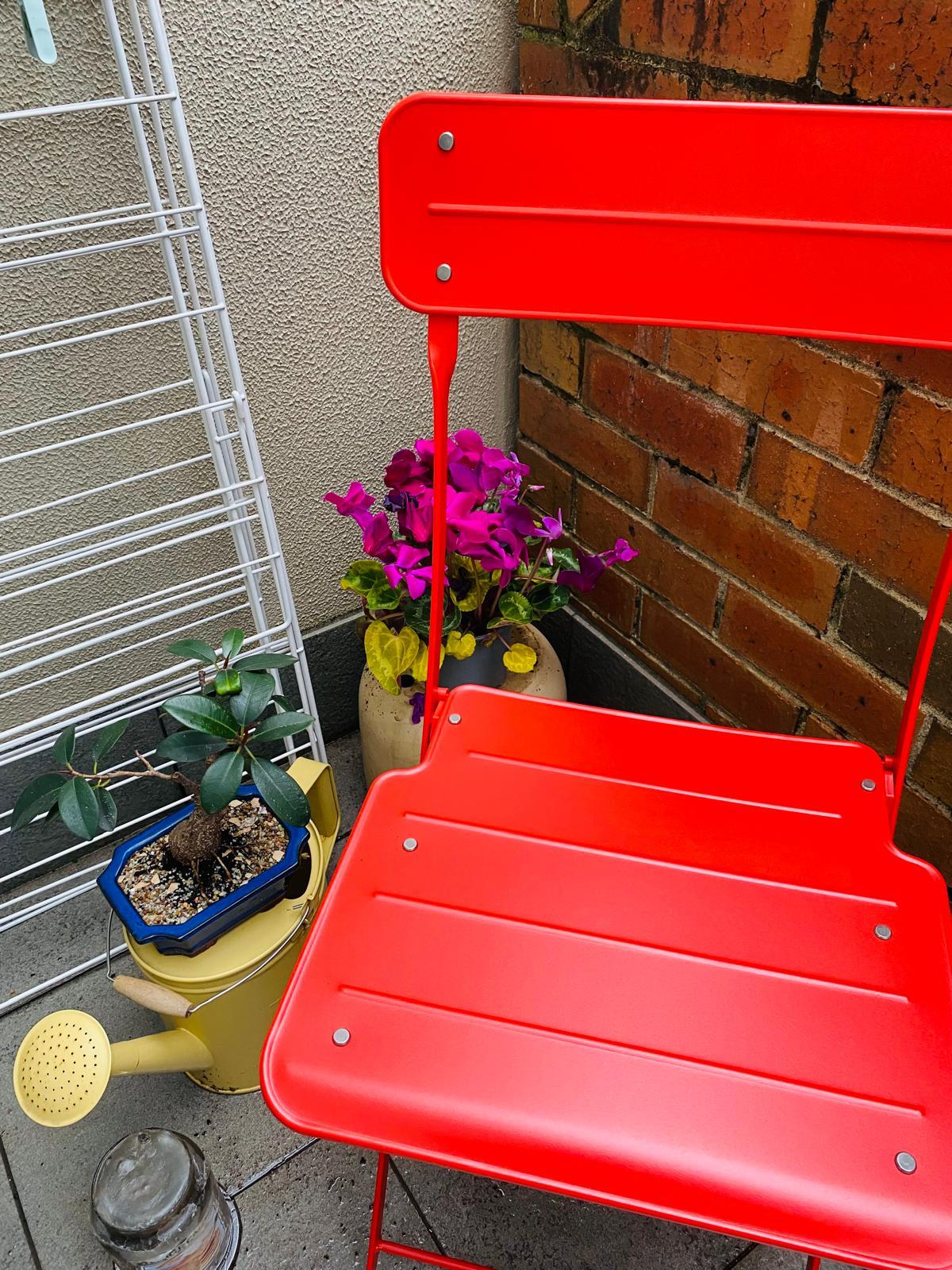 The red and blue chairs sit in quiet conversation, carrying the whispers of three cultures. The blue chair breathes of France, the hue of liberty and skies that awaken poets; it drifts to Australia, where ocean and horizon embrace with serene vastness; and it sails to Indonesia, where the seas weave islands into a tapestry of unity 🌊. The red chair glows with warmth — France’s passion and courage, Australia’s sunburnt earth that anchors the spirit, and Indonesia’s brave heart, shining proudly in its flag ❤. In the corner, the white pot stands humbly, a vessel of stillness and simplicity, holding life in quiet balance — the silent witness to colours, cultures, and conversations of the heart. Side by side, they are more than places to rest; they are symbols of connection and belonging — a tender meeting of worlds on a simple balcony, where cultures entwine like lovers in timeless embrace.